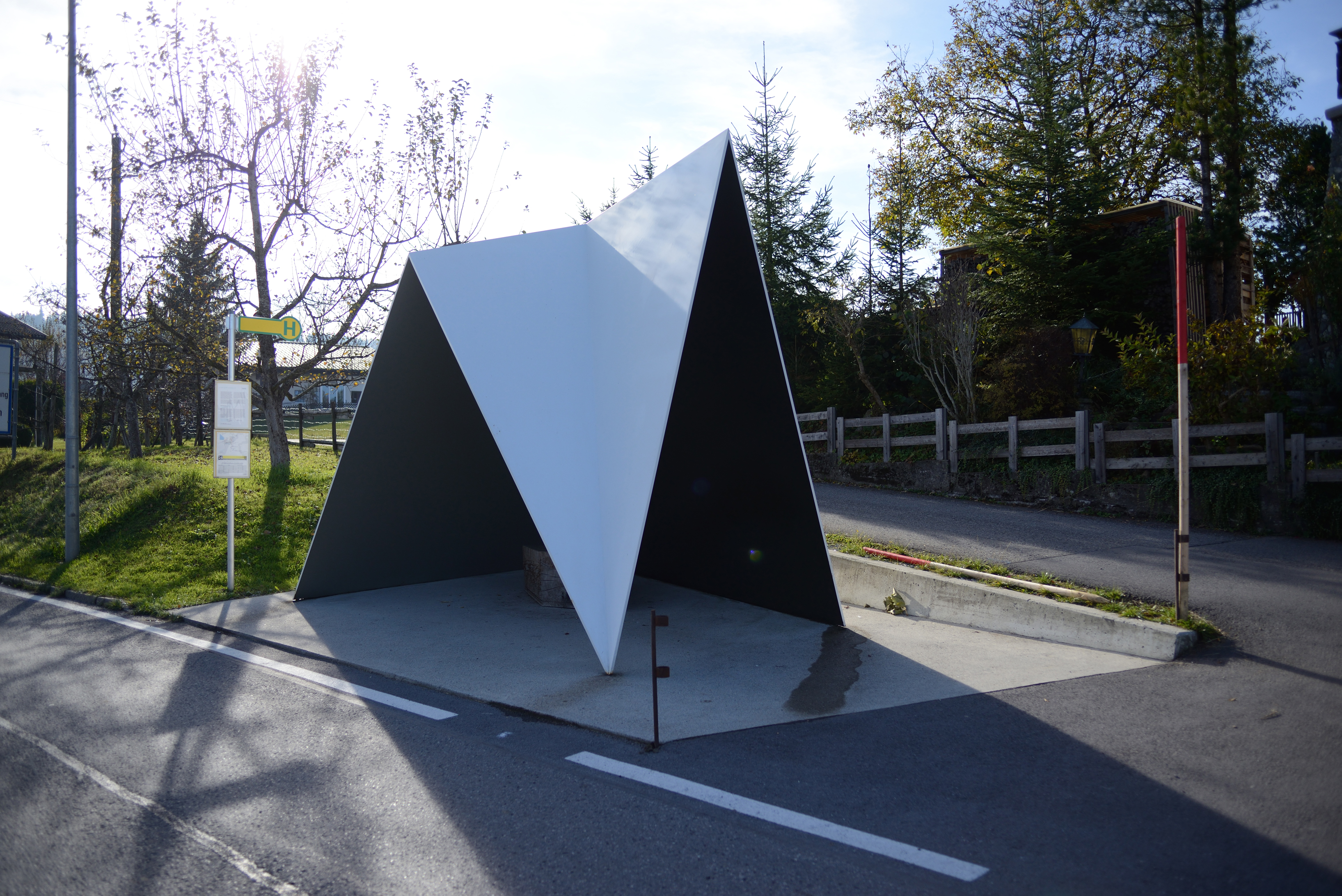 Krumbach in the northern part of Bregenz Forest, together with a private art society, recently commissioned seven international architectural firms to design a "wartehüsle", or bus stop shelter, on the rural bus route round the municipality. The result is a kind of international architecture exhibition for mobile visitors, where the exhibits can both be used and marvelled at. Anyone planning to go on a tour of these innovative bus shelters (principled people will take the bus, but unfortunately it's easier by car) might like to know the extraordinary fact that the architects involved – namely Alexander Brodsky from Russia, Rintala Eggertsson Architects from Norway, Architecten de Vylder Vinck Taillieu from Belgium, Ensamble Studio Antón García-Abril & Débora Mesa from Spain, Smiljan Radic from Chile, Amateur Architecture Studio Wang Shu & Lu Wenyu from China and Sou Fujimoto from Japan – accepted the wartehüsle job in exchange for a few days' holiday in Bregenz Forest and received no remuneration. Now I think you'll agree: such powers of persuasion are only found in those who are convinced of their own worth!
