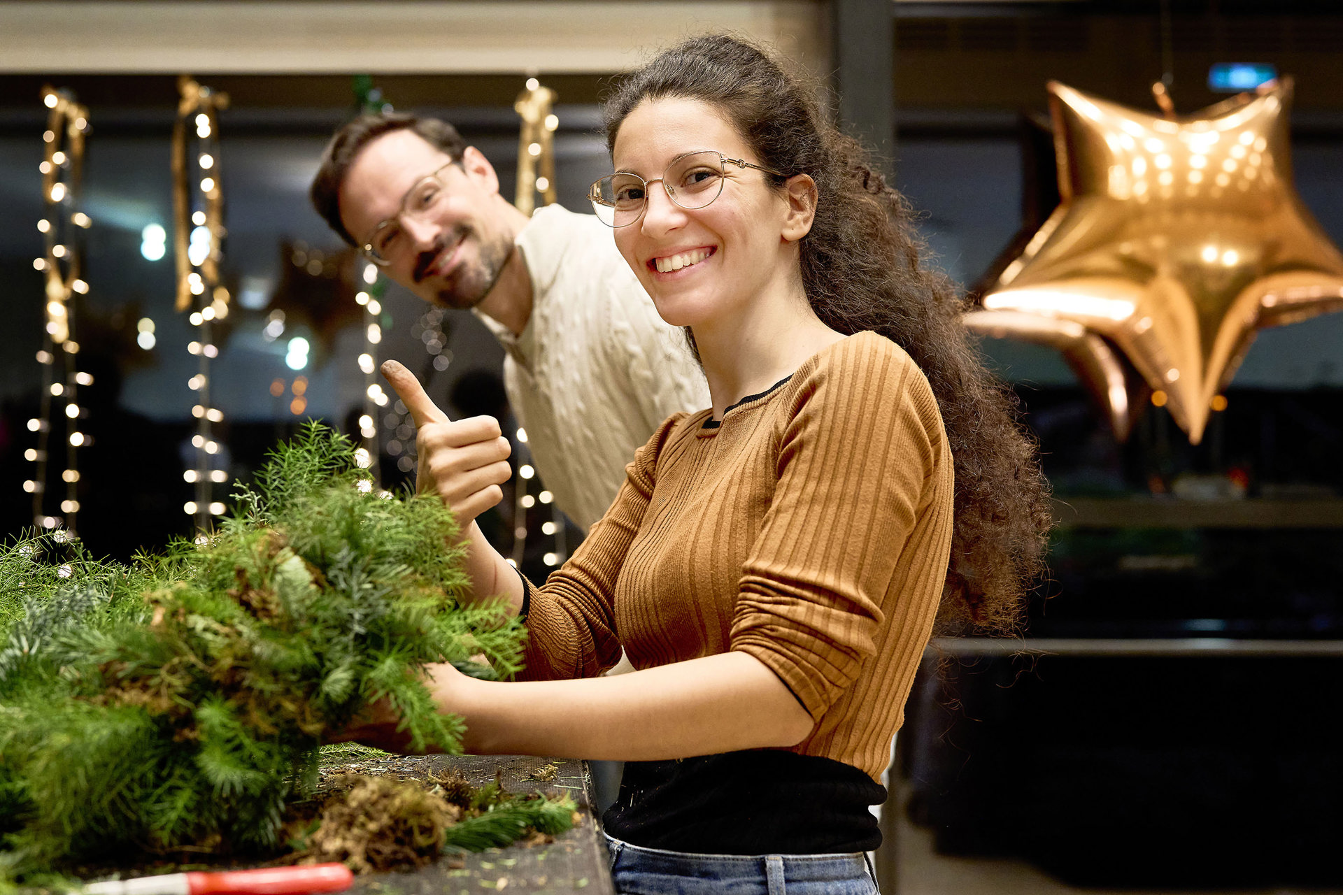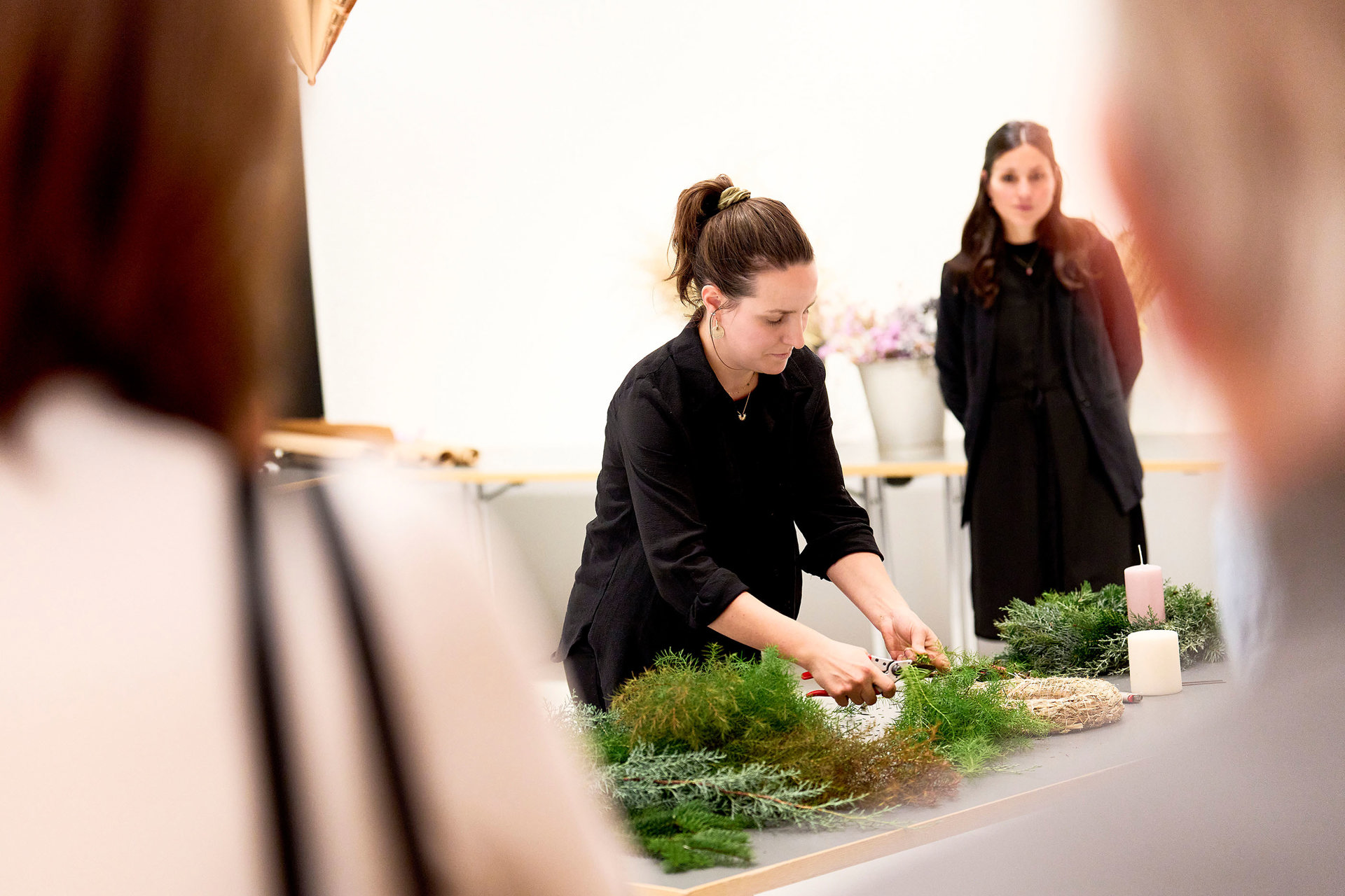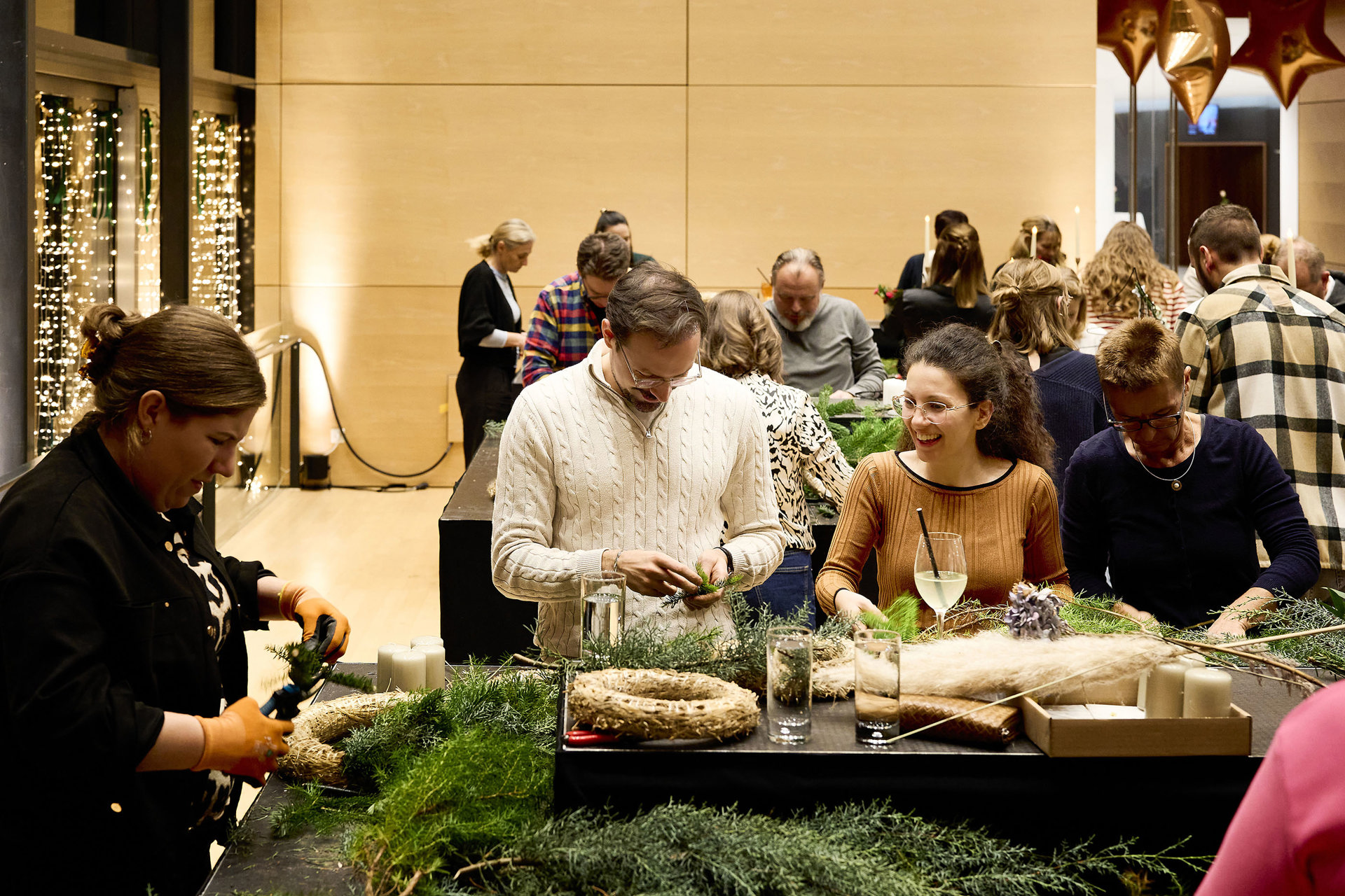 Mit fachkundiger Begleitung durch Fabienne und Kerstin von Naturfloristik „Natürlich Fabienne“ entstanden an der Handwerkstation individuelle Adventskränze – liebevoll gestaltet, um zuhause oder im Büro vorweihnachtliche Stimmung zu verbreiten.