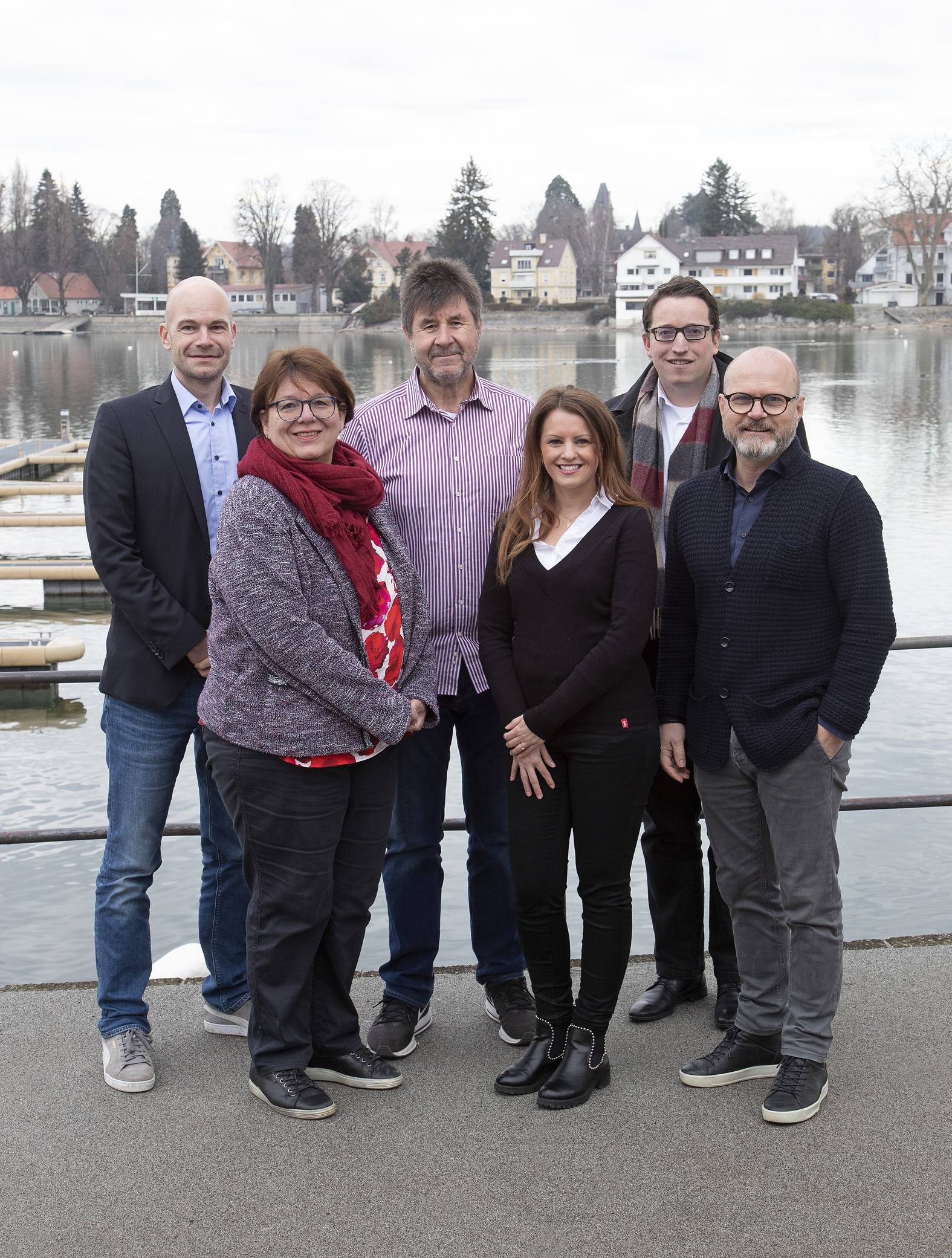 Der Vorstand des BodenseeMeeting e.V. (v.l.n.r.): Kassier Carsten Holz (Lindau Tourismus und Kongress GmbH), Schriftführerin Klaudia Zechner (SAL – Saal am Lindaplatz, Schaan, FL), Beisitz Reinhold Maier (Stadthalle Singen), Stellvertretende Vorsitzende Anja Sachse (St. Gallen-Bodensee Tourismus), Vorsitzender Urs Treuthardt (Bodensee-Vorarlberg Tourismus, Bregenz), Beisitz Gerhard Stübe (Kongresskultur Bregenz)